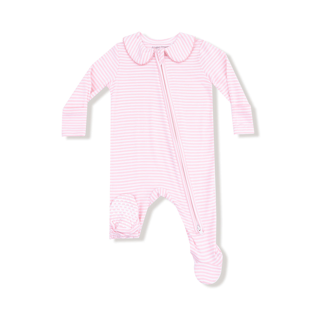 Pink Stripe Zipper Footie