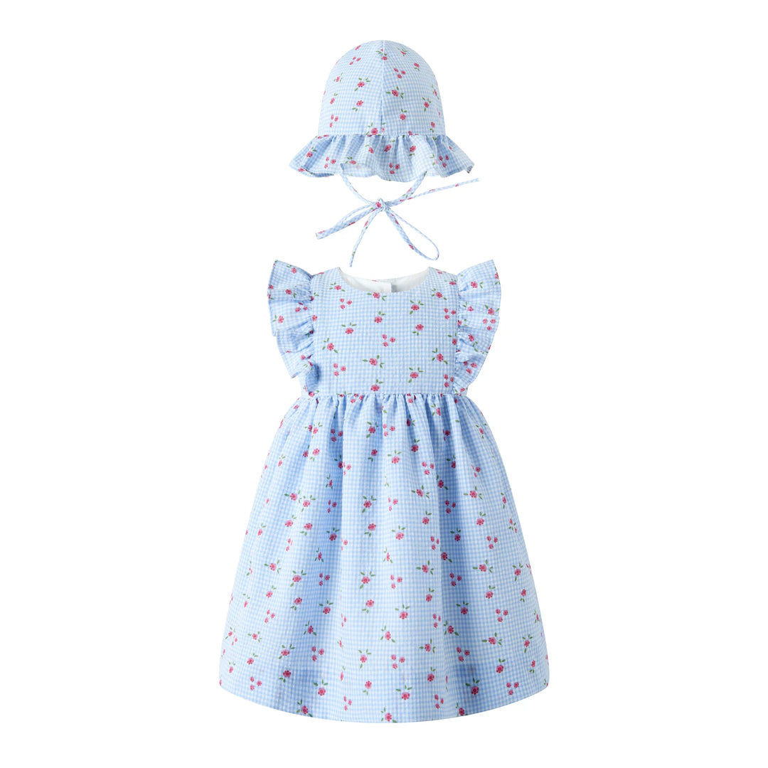 Blue Gingham Floral Sundress & Hat