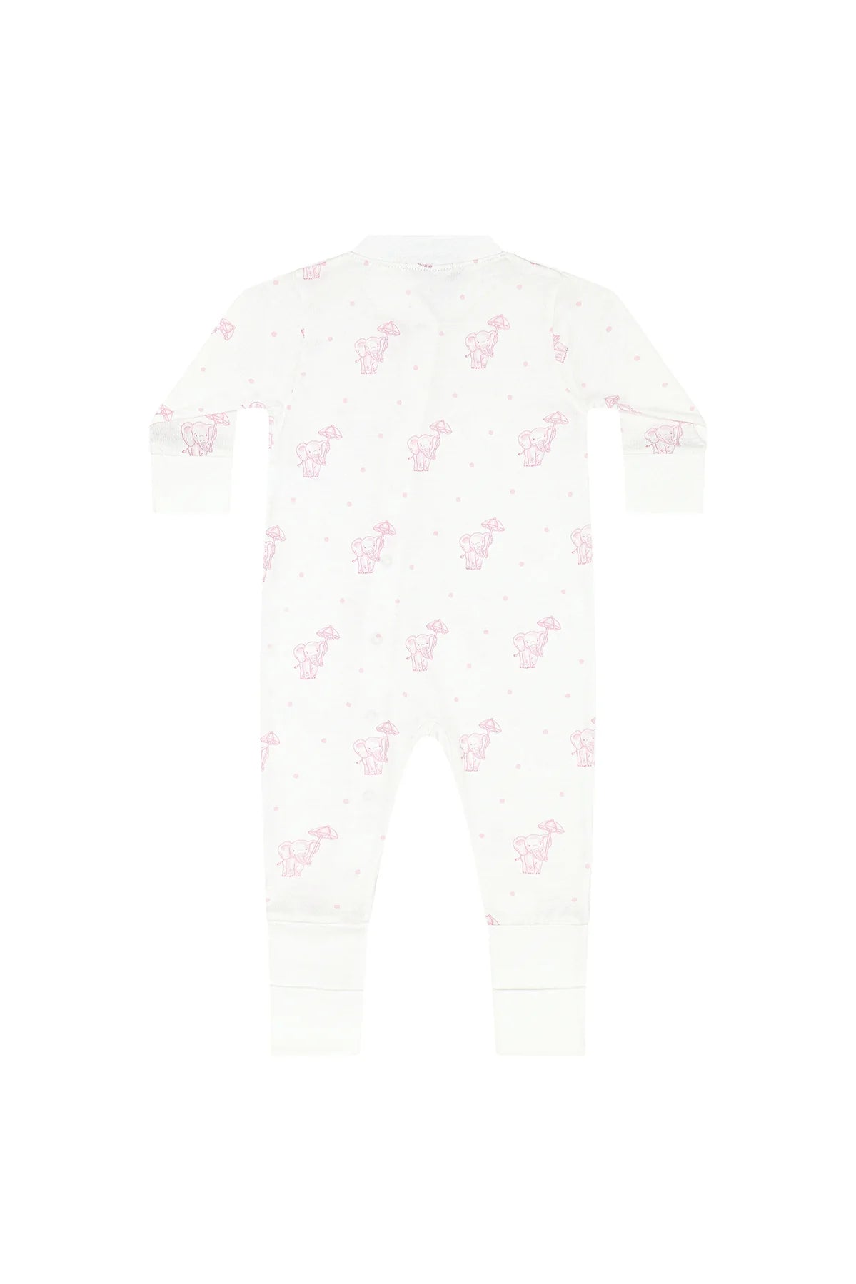 The sweet pink elephant print adds a charming and feminine touch, making it perfect for both sleep and daytime wear. Designed with convenient snap closures, dressing and diaper changes are quick and effortless.