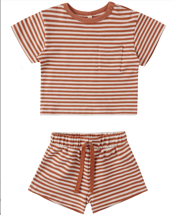 Boxy Pocket Tee+Short Set - Poppy Stripe