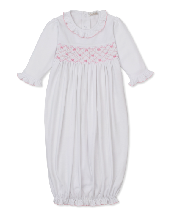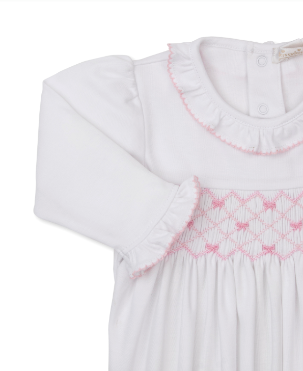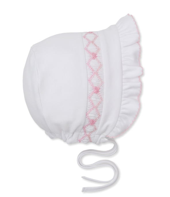 White & Pink Bonnet w/ Hand Smocked - Bows