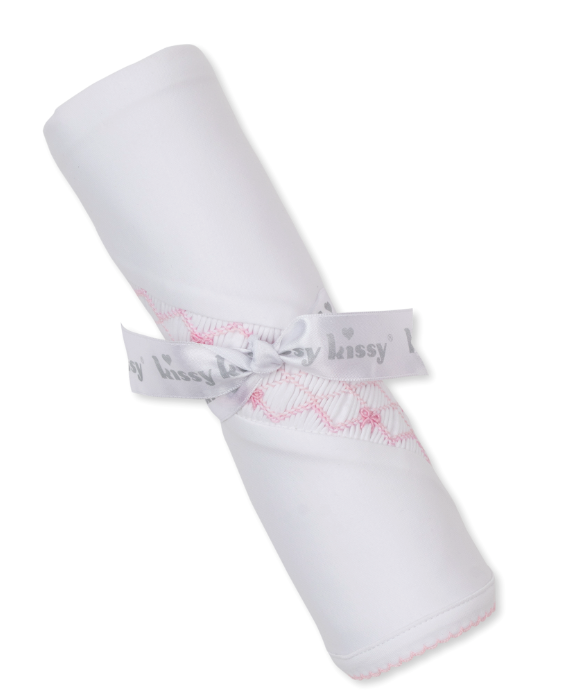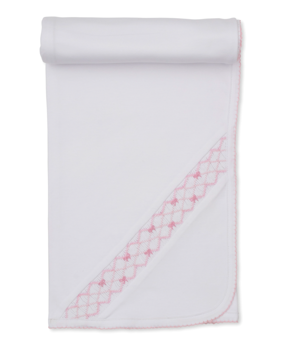 Pink & White Blanket w/ Hand Smk - Bows